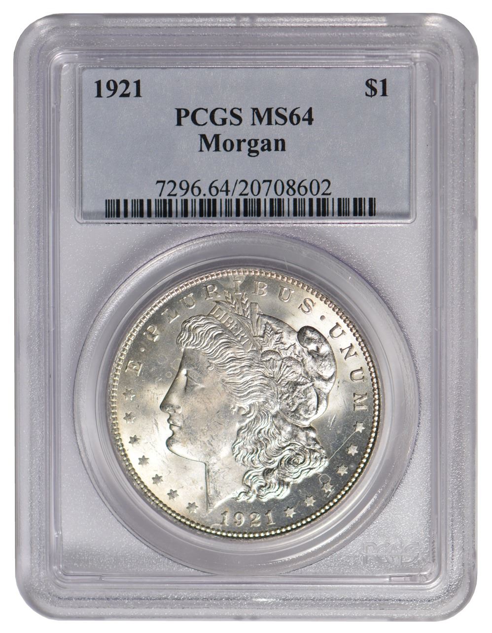 One 1921 $1 Morgan Silver Dollar PCGS MS64.