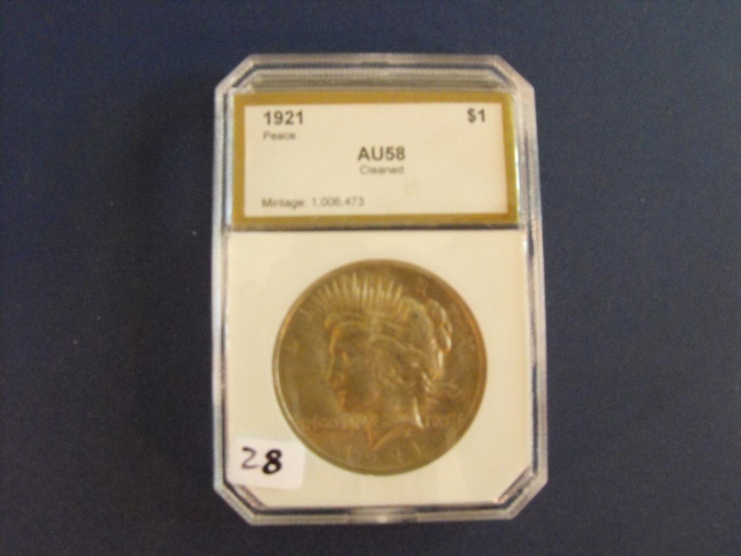 1921 $1 PEACE DOLLAR KEY DATE AU 58