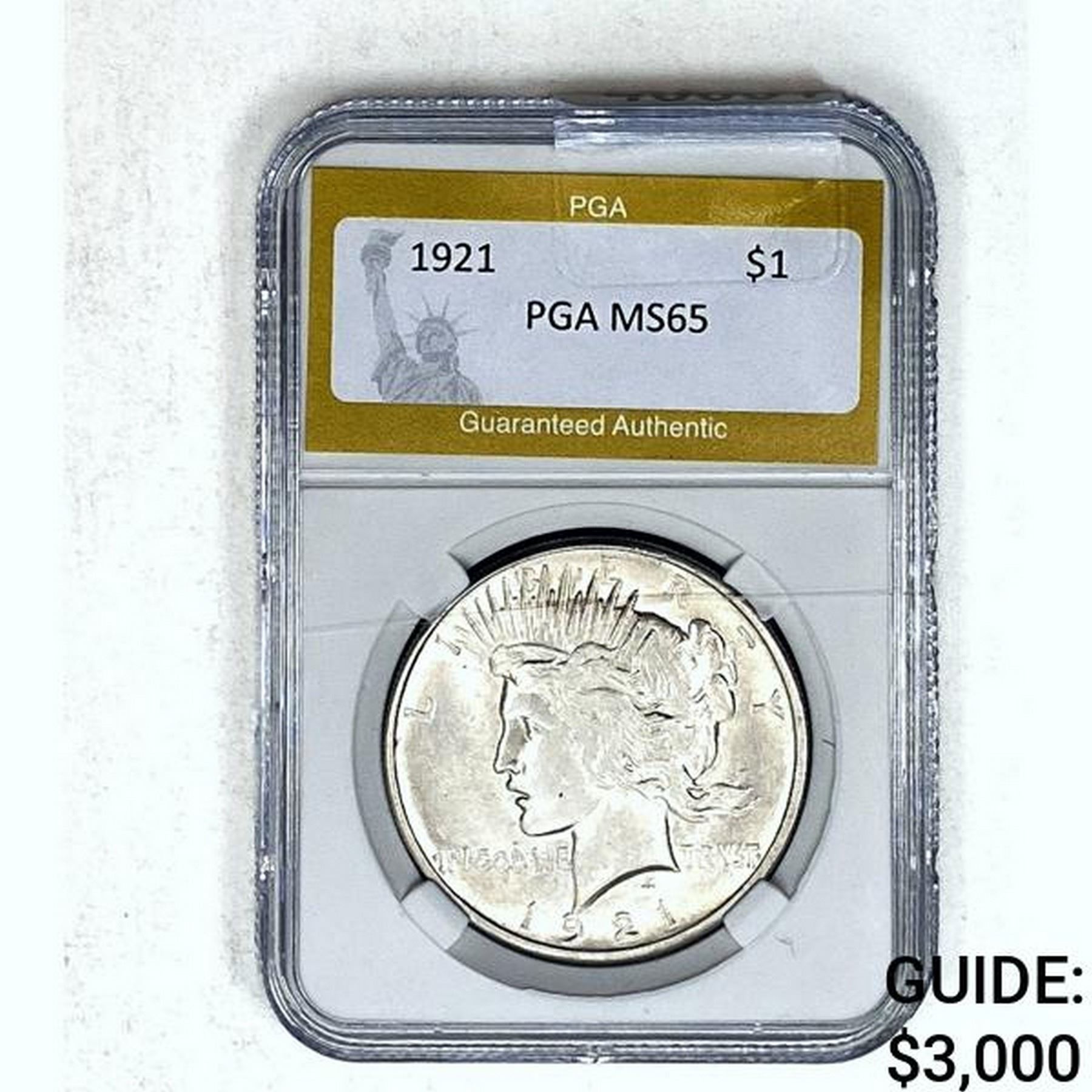 1921 $1 Peace Dollar PGA MS65 SILVER