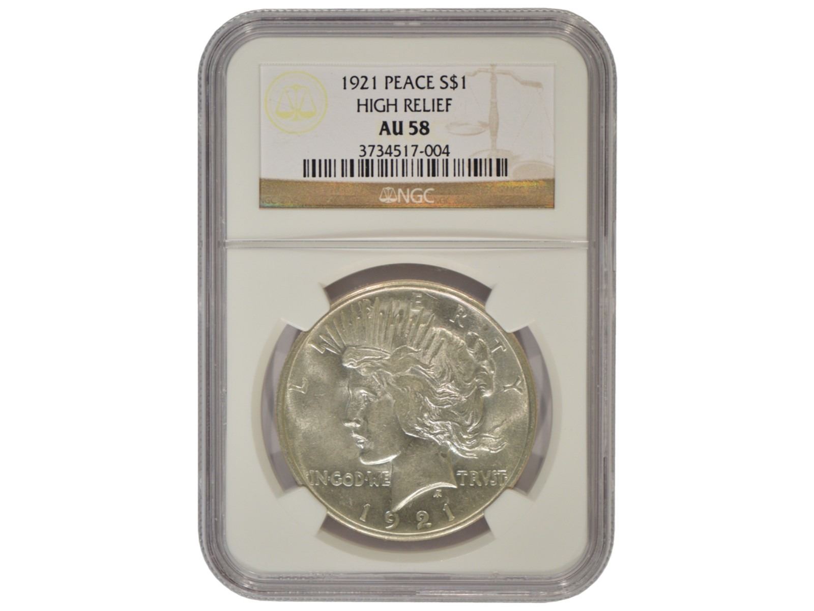 One 1921 $1 Peace High Relief Silver Dollar Coin NGC AU58.