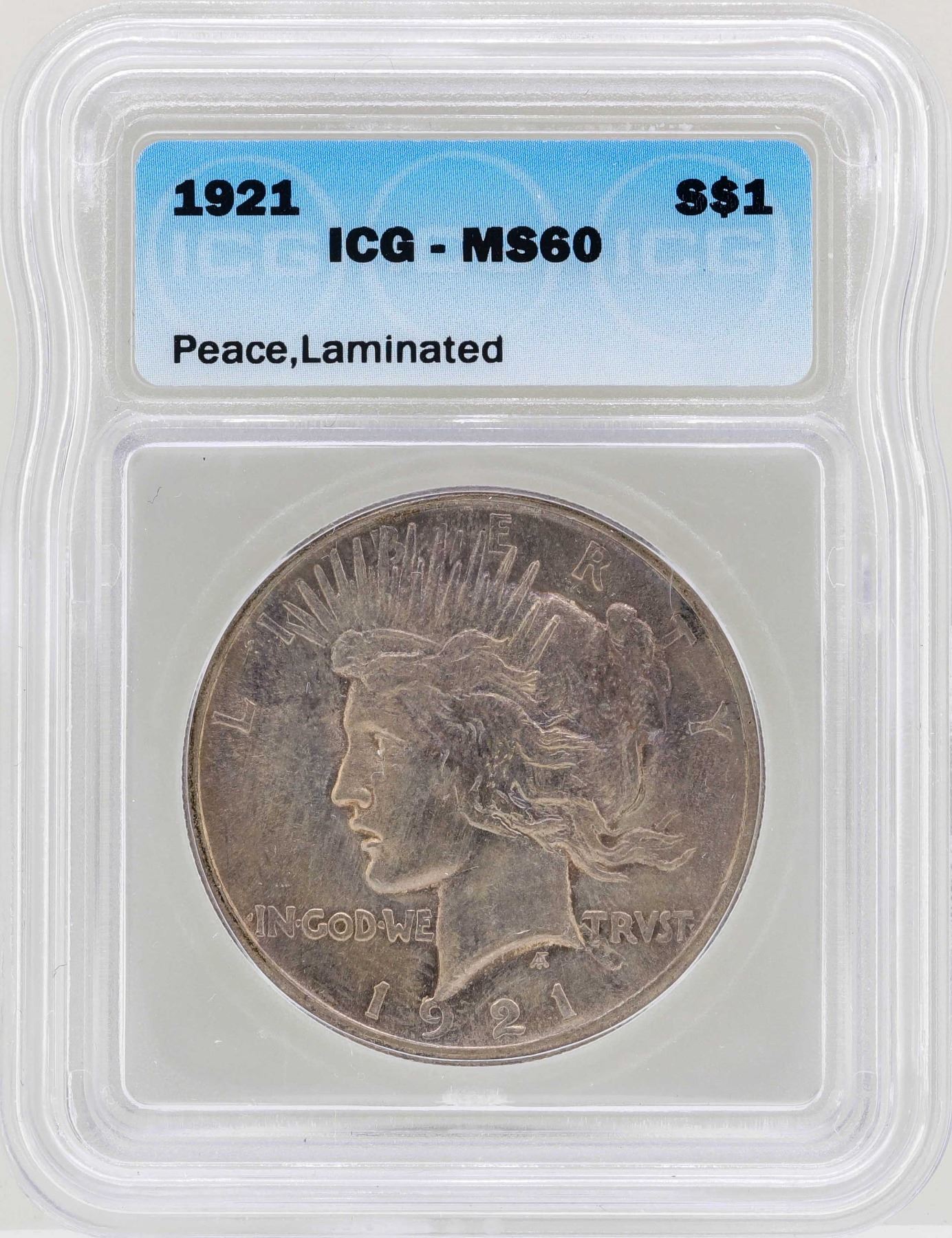 One 1921 $1 Peace Silver Dollar Coin ICG MS60.