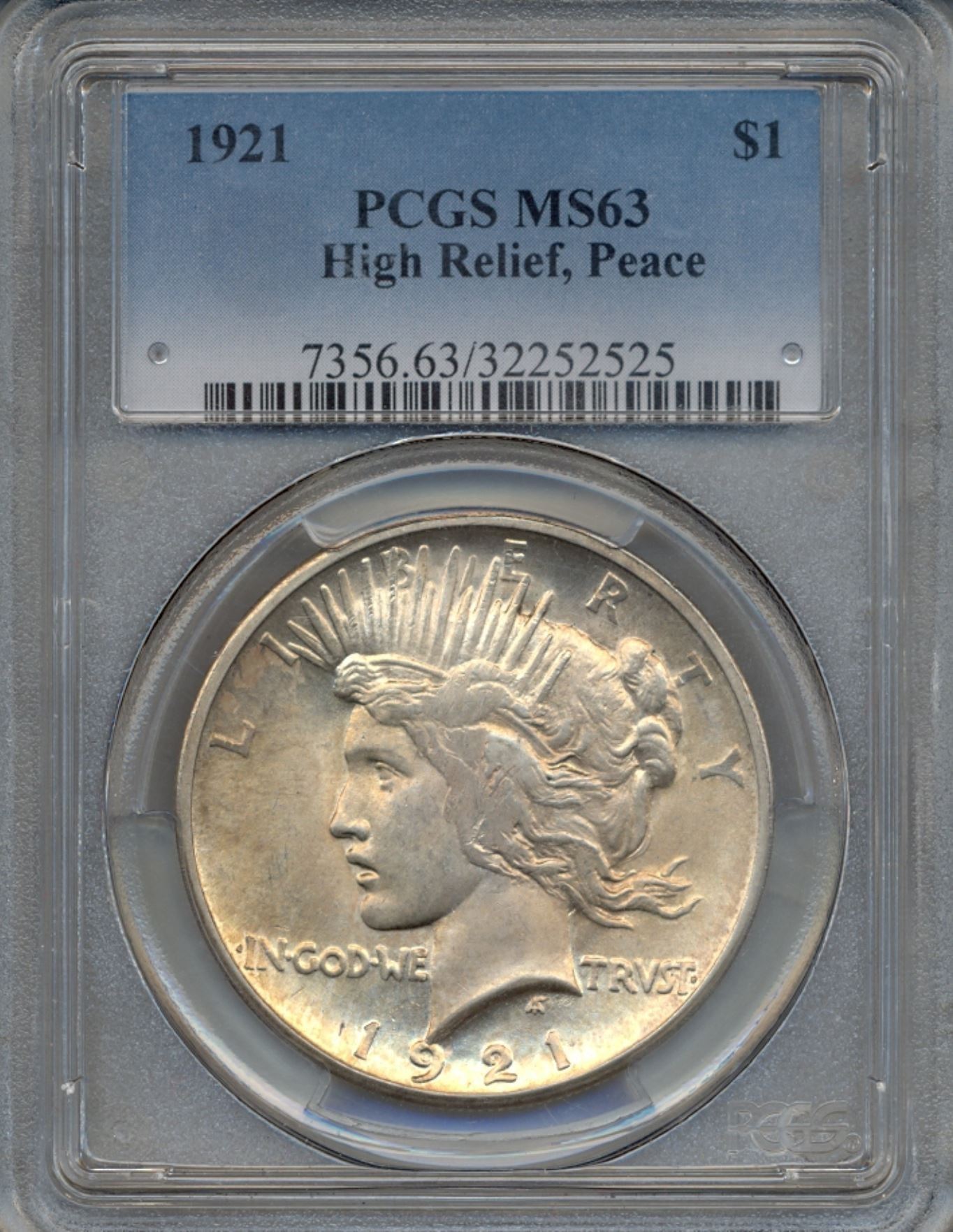 One 1921 $1 Peace Silver Dollar Coin PCGS MS63.