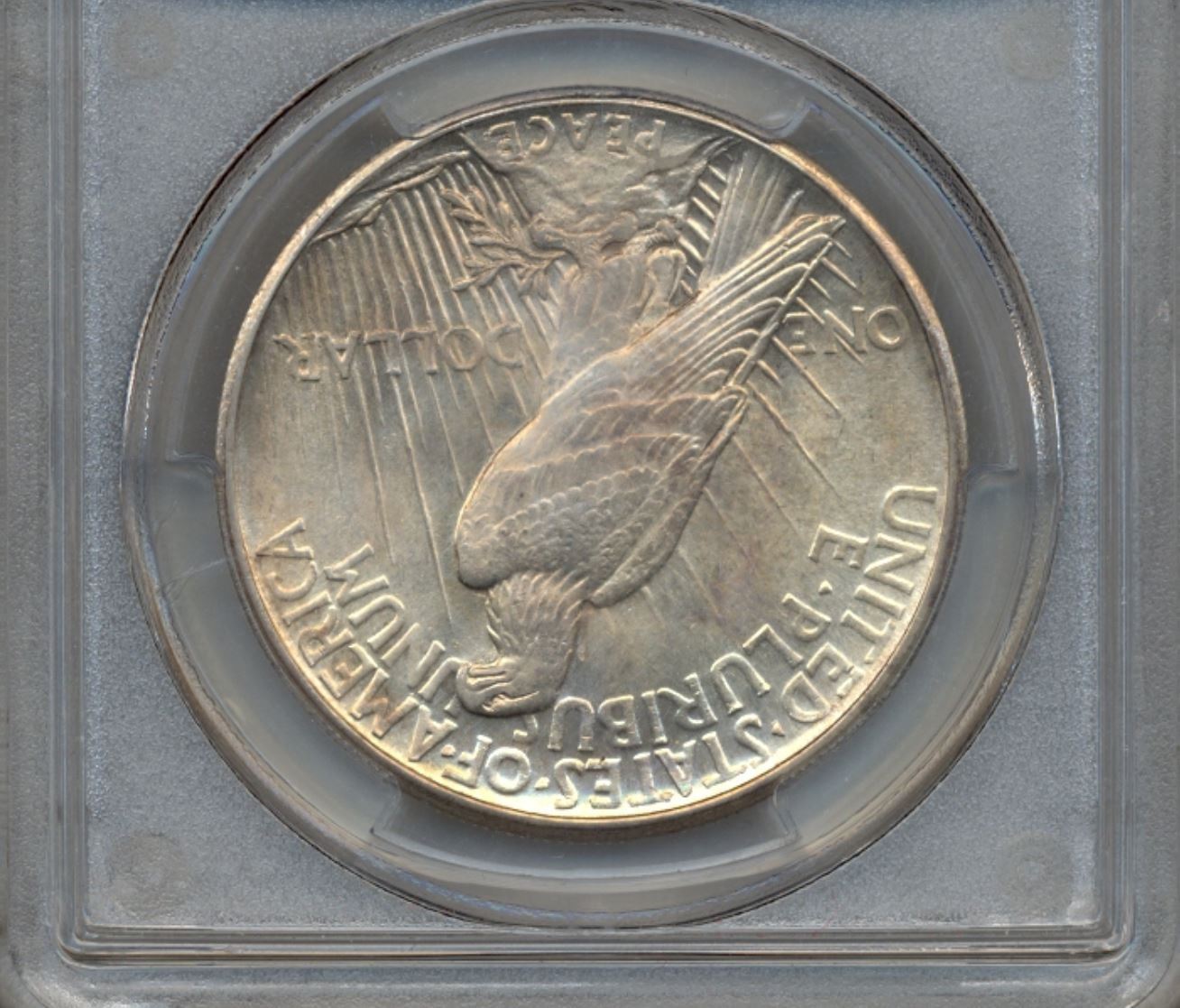 Bidders are advised that certain types of plastic may react with a coin’s metal or transfer plasticizer to notes and may cause damage. Caution should be used to avoid storage in materials that are not inert.