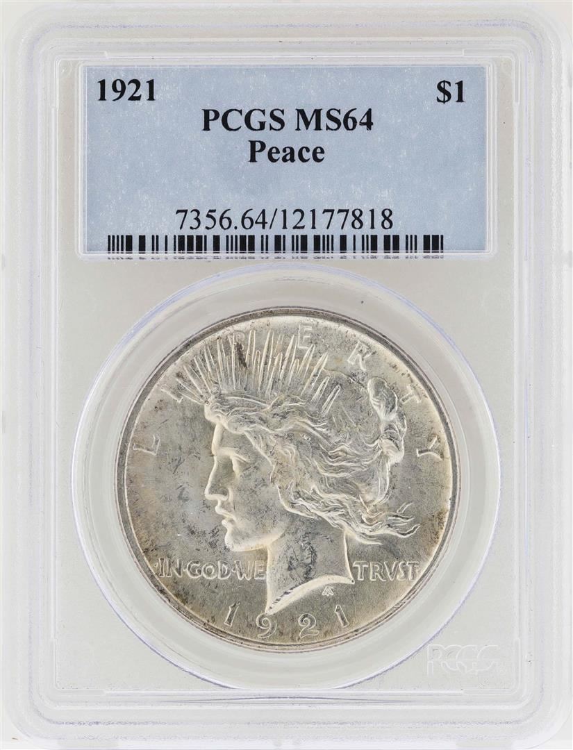 One 1921 $1 Peace Silver Dollar Coin PCGS MS64. NGC Certified.