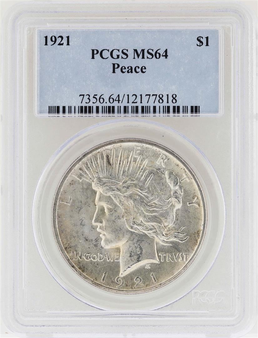 One 1921 $1 Peace Silver Dollar Coin PCGS MS64. PCGS Graded.