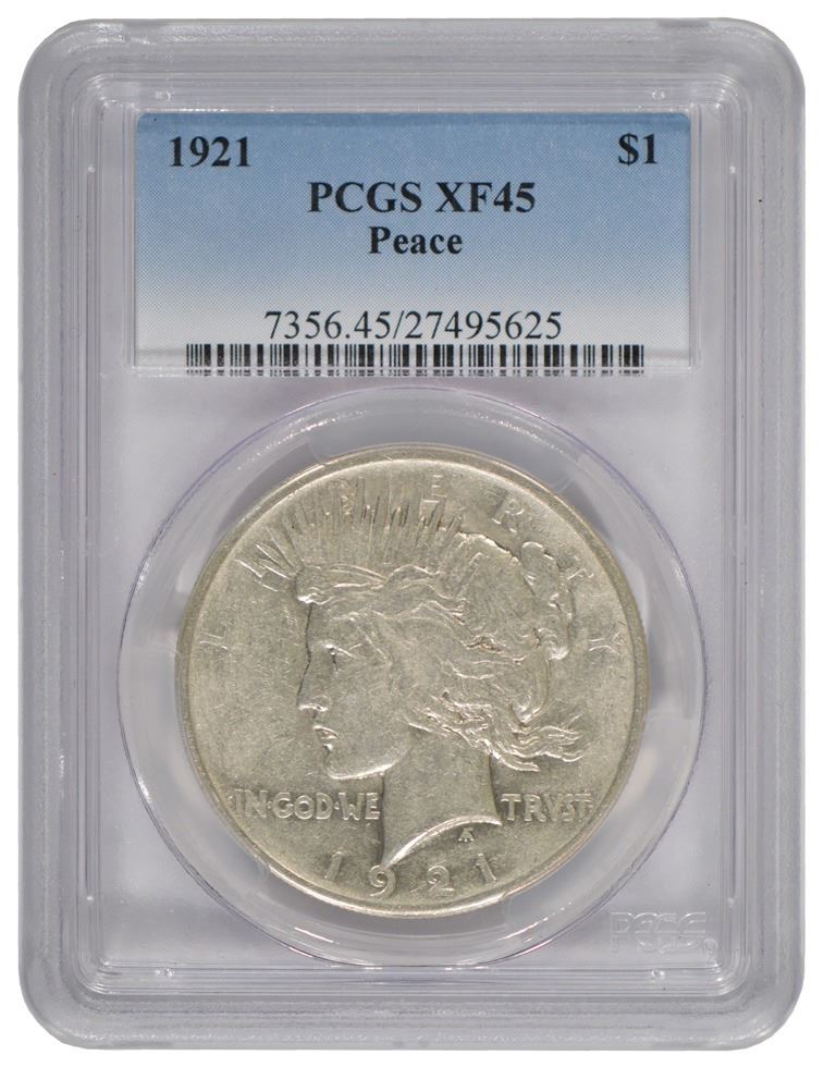 One 1921 $1 Peace Silver Dollar Coin PCGS XF45.