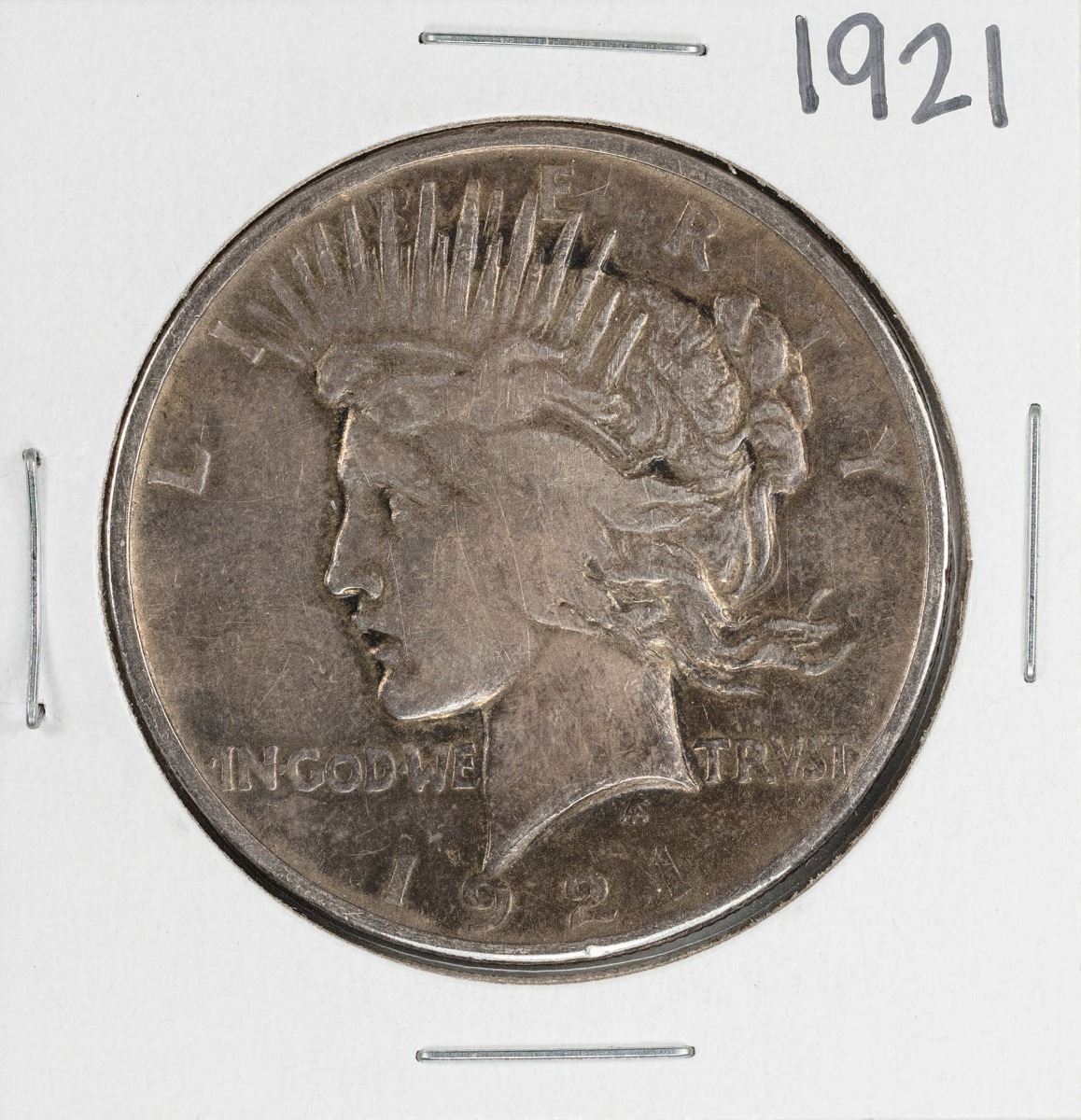 One 1921 $1 Peace Silver Dollar Coin.
