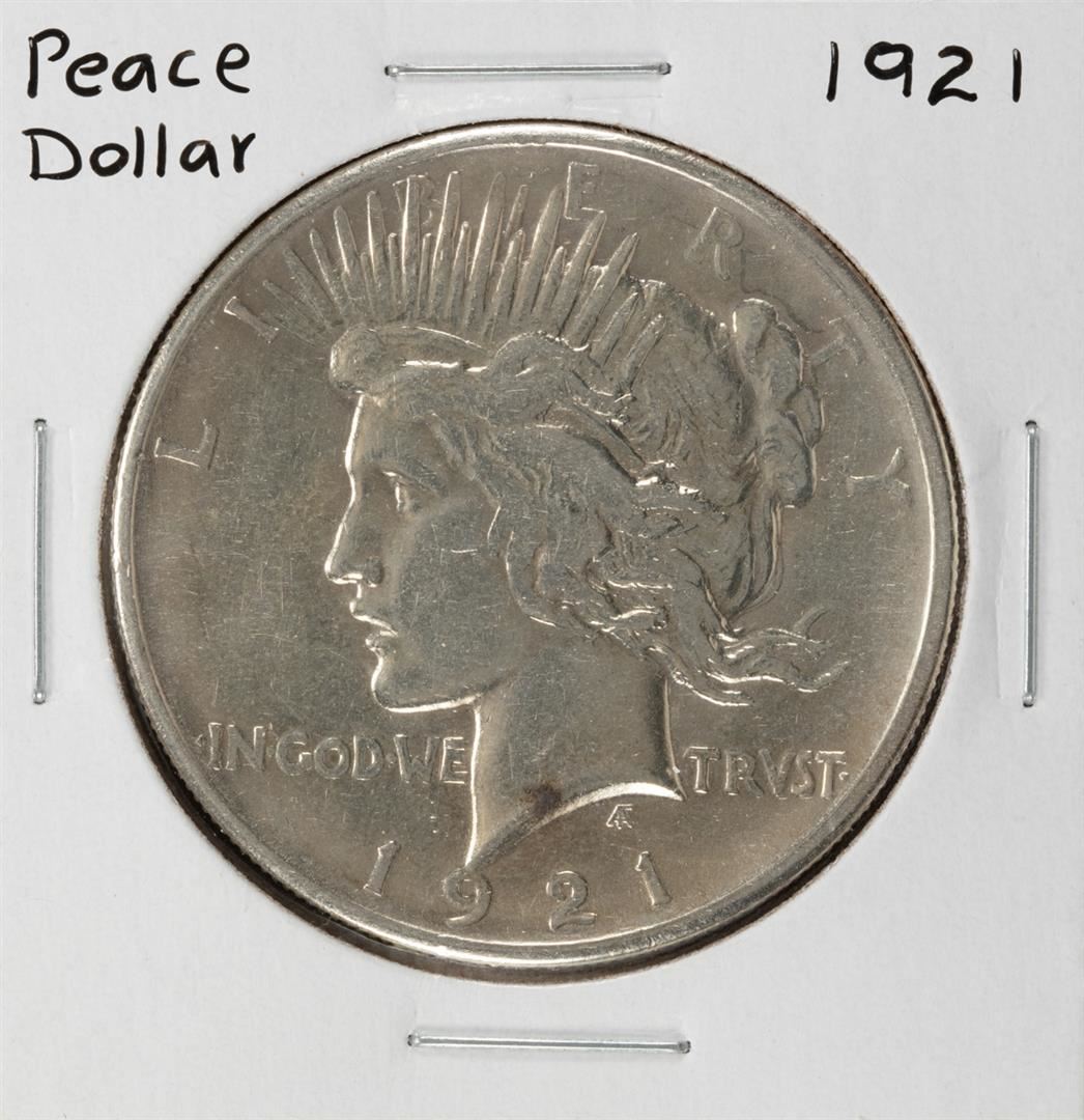 One 1921 $1 Peace Silver Dollar Coin.