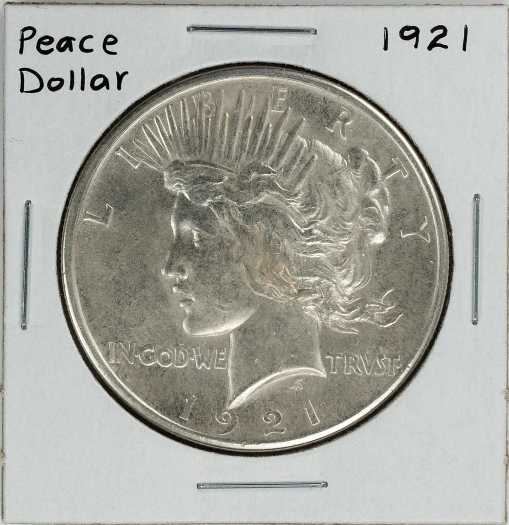 One 1921 $1 Peace Silver Dollar Coin.