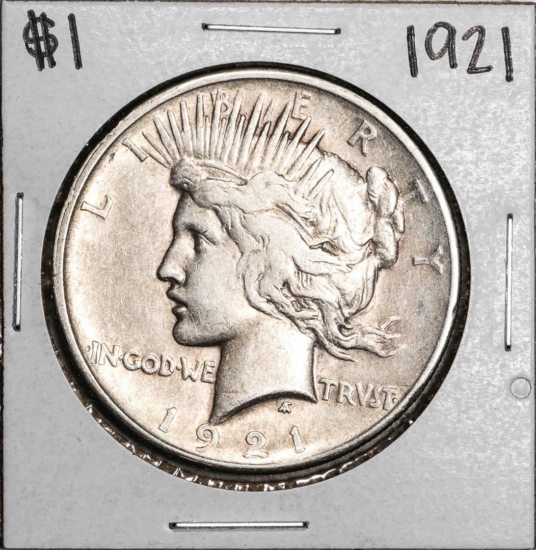 One 1921 $1 Peace Silver Dollar Coin.