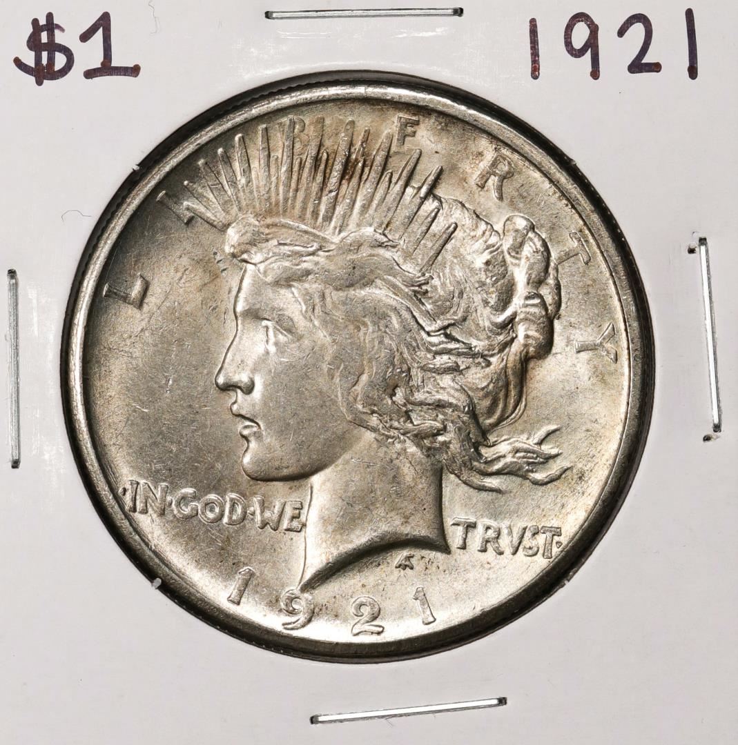 One 1921 $1 Peace Silver Dollar Coin.