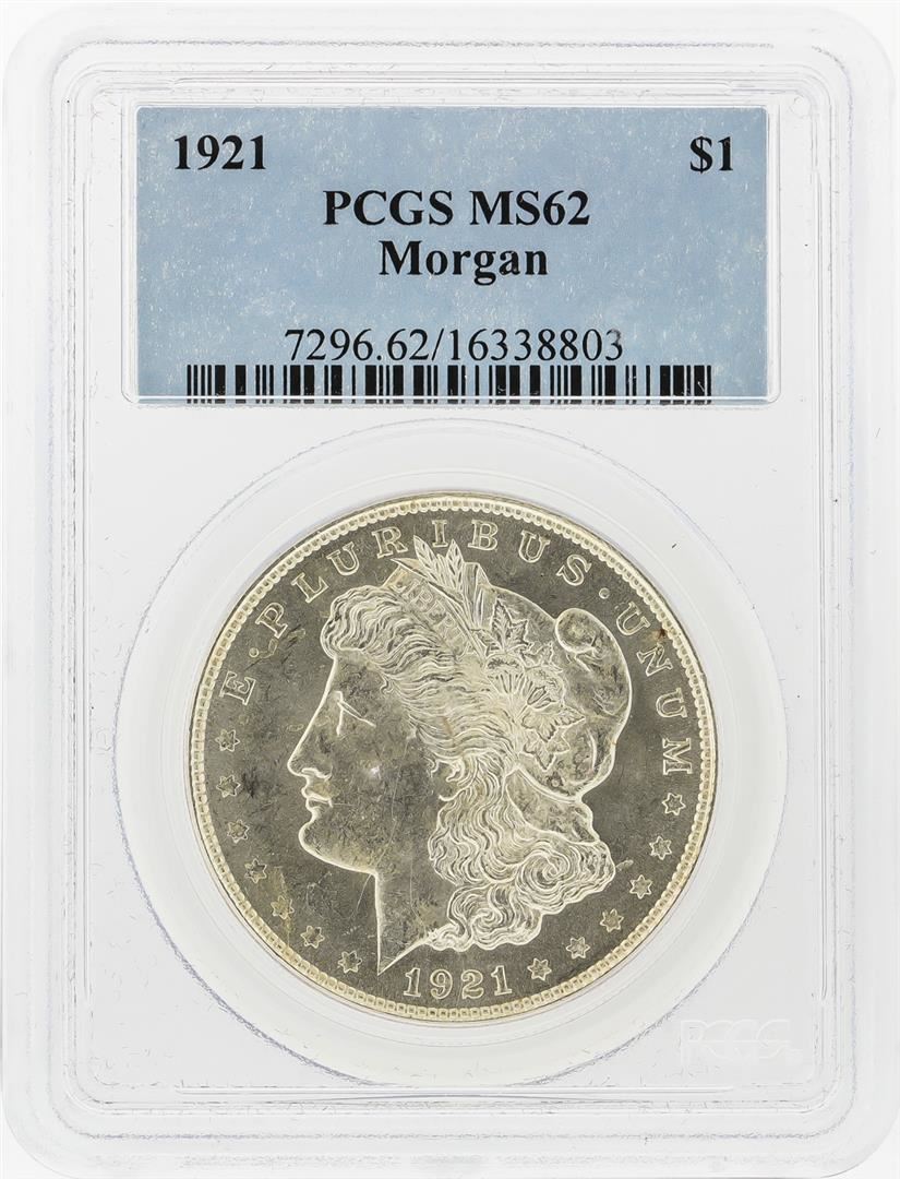 One 1921 $1 Peace Silver Dollar PCGS Graded MS62. PCGS Graded.
