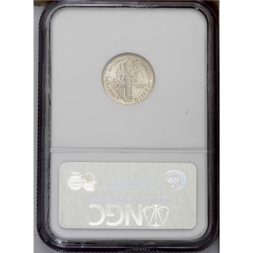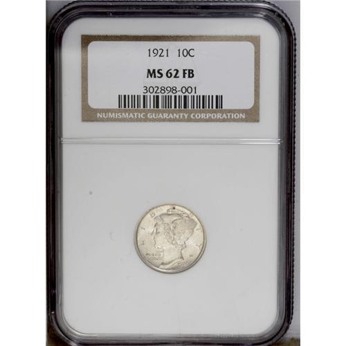 <B>1921<10C> MS62 Full Bands NGC.</B></I> This Mint State example of an important key date dime displays light champagne-gray coloration and satiny luster over both sides. The otherwise crisp striking details exhibit slight fadeaway near the peripheries, but are full over the all-important central crossbands. Both sides are free of grade-inhibiting marks, but the luster is a little too subdued to allow a higher grade designation.