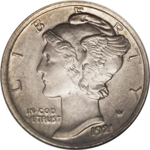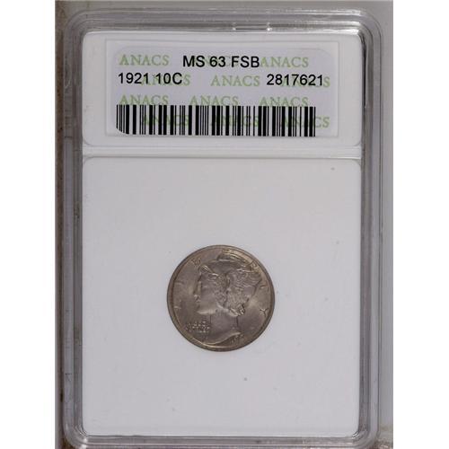 <B>1921 10C MS63 Full Bands ANACS.</B></I> Crispy struck save for the almost expected softness on the base of final two digits of the date. Pale violet patina overlies both sides and only a few wispy blemishes are noticed on Liberty's cheek.