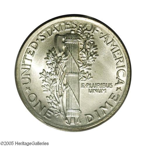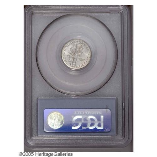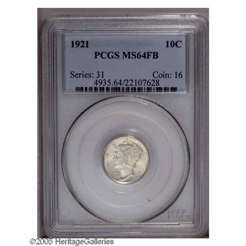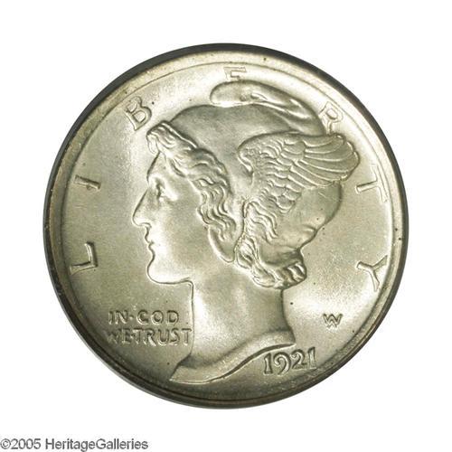 <B>1921<10C> MS64 Full Bands PCGS.</B></I> This lustrous near-Gem has a hint of gold color and an intricate central strike. The borders are also generally crisp, the top of STATES is the exception. Refreshingly unabraded, the grade is apparently limited by a few pinpoint toning flecks. A collector favorite due to the low mintage of 1,230,000 pieces; the next lowest Philadelphia Mint production is the 1931, of which 3.15 million pieces were coined. The rims are unusually broad and the dies moderately rotated, as made.