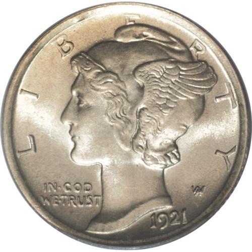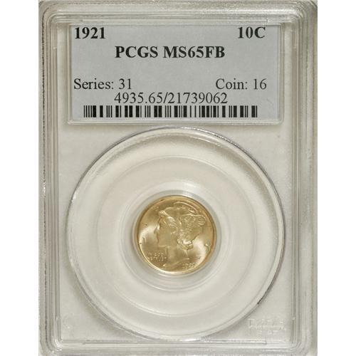 <B>1921 10C MS65 Full Bands PCGS.</B></I> This creamy Gem coin offers lovely golden-orange patina on the obverse with a silver-gold reverse, peerless, satiny fields, and razor-sharp central devices. One of the keys to the series, the 1921 has the lowest production of any Philadelphia Mint date, and only the 1916-D and 1921-D have a smaller mintage. Population: 55 in 65 Full Bands, 36 finer (4/07).<BR><BR><b>Shipping:</b> Coins & Currency (<a target="_blank" href="http://www.heritageauctions.com/common/shipping.php">view shipping information</a>)