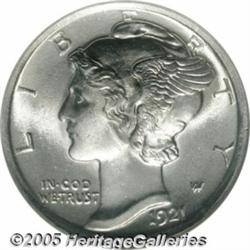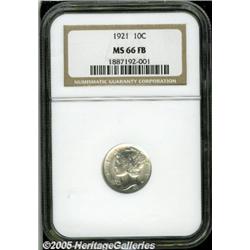 <B>1921 10C MS66 Full Bands NGC.</B></I> This low mintage (1.23 million pieces) issue is a prized commodity in problem-free AU condition. The crisply struck premium Gem that we highlight here is among the finest certified examples available to advanced collectors. Fully separated from end to end, the central bands more than complement the balance of the snappy features. The surfaces are richly frosted, with neither toning nor detracting abrasions. PCGS and NGC combined report only five examples above the present grade level (2/05).