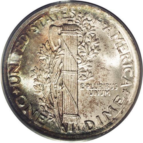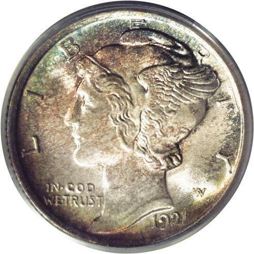 1921 10C MS66 Full Bands PCGS. Lush, stunning toning i