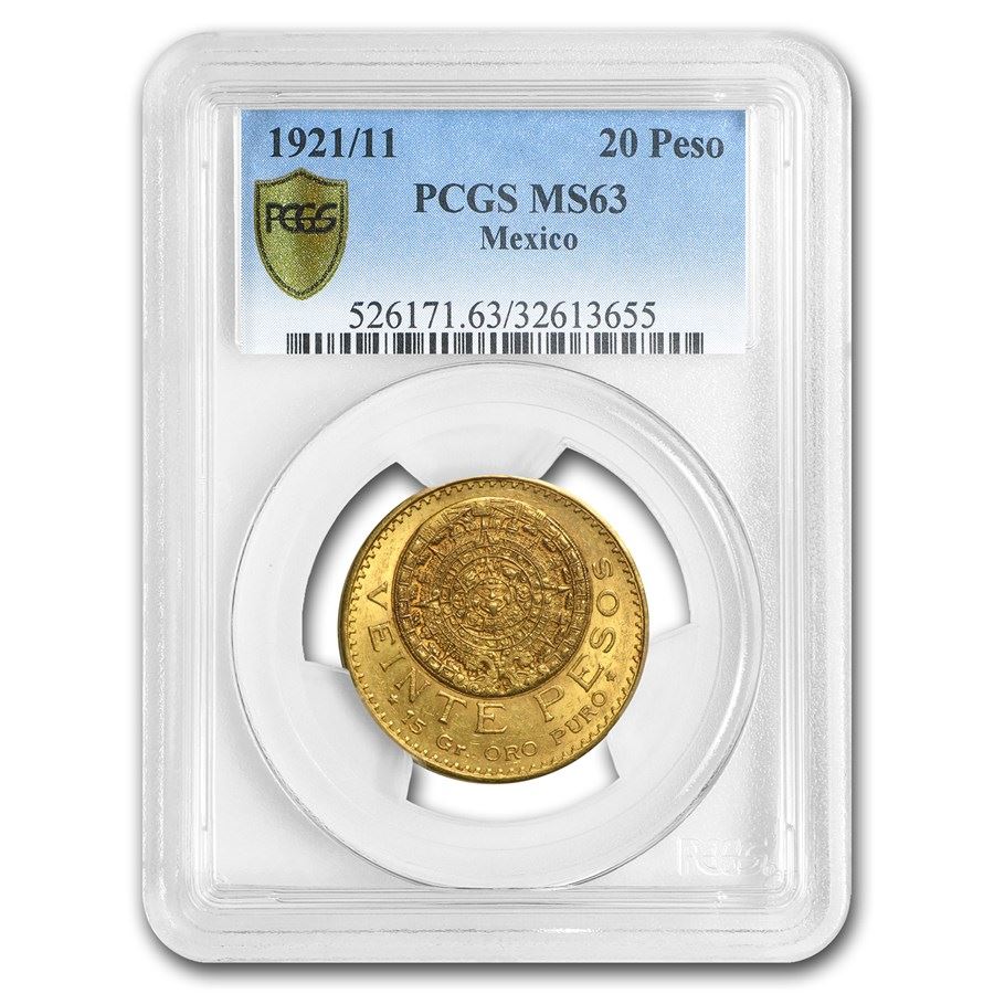 1921/11 Mexico Gold 20 Pesos MS-63 PCGS