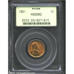 1921 1C MS65 Red PCGS. Lustrous and problem-free matte surfaces are shaded in a gorgeous red shade with green undertones. Important notice: We expect to be auctioning lots at the rate of 200-250 per hour. Sometimes eBay Premier live bid software cannot keep up with that pace, so we strongly recommend that you place a realistic proxy bid now as insurance to avoid disappointment. Also please note that all Heritage/CAA lots purchased through eBay Premier carry a 20% Buyer's Premium. Please make sure you read the Terms and Conditions.