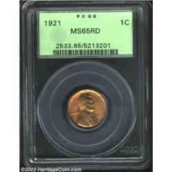 1921 1C MS65 Red PCGS. Lustrous with orange-red color, both sides are bold-to-sharp in strike. Free.