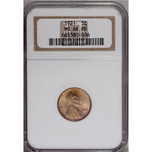 <B>1921<1C> MS66 Red NGC.</B></I> Fiery-red color has developed on both sides of this finely preserved Lincoln cent. A strong strike overall with a single carbon fleck under the Y of LIBERTY. Census: 26 in 66, 1 finer (1/06).