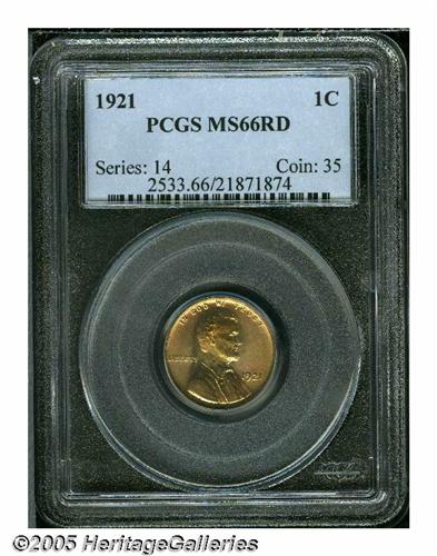 <B>1921<1C> MS66 Red PCGS.</B></I> Reddish-orange and golden hues confirm the originality of this solidly graded Gem. The luster is not only full, but it is vibrant as well, and there are no abrasions that would prevent one from appreciating the awe-inspiring eye appeal. A few minor spots are detected on the reverse.