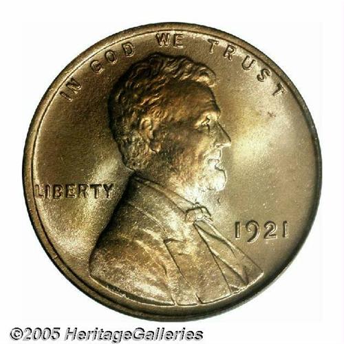 <B>1921<1C> MS68 Red PCGS.</B></I> This impeccable early Lincoln Cent has a 50/50 chance (since only two are certified as such) of being the Superb representative sold way back in our April 1994 Indianapolis Bullet Sale, a coin described as a "breathtaking 1921 Lincoln. The surfaces incorporate everything ones looks for in a copper coin...strike, luster, incredible color, and immaculate surfaces." We would add that the obverse displays beautiful orange accents on the highpoints of Lincoln's portrait. Population: 2 in 68, 0 finer (3/05).<BR><I>From The Tom Mershon #2 All-Time PCGS Registry Set of Lincoln Wheat Cents.</B></I>