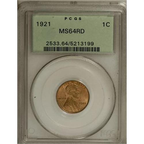 <B>1921 1C MS64 Red PCGS.</B></I> . PCGS Population (263/249). NGC Census: (79/109). Mintage: 39,157,000. Numismedia Wsl. Price for NGC/PCGS coin in MS64: $100. (#2533)<BR><BR><B>Coin Engraver:</B> Victor D. Brenner<BR><BR><b>Shipping:</b> Coins & Currency (<a target="_blank" href="http://www.heritageauctions.com/common/shipping.php">view shipping information</a>)