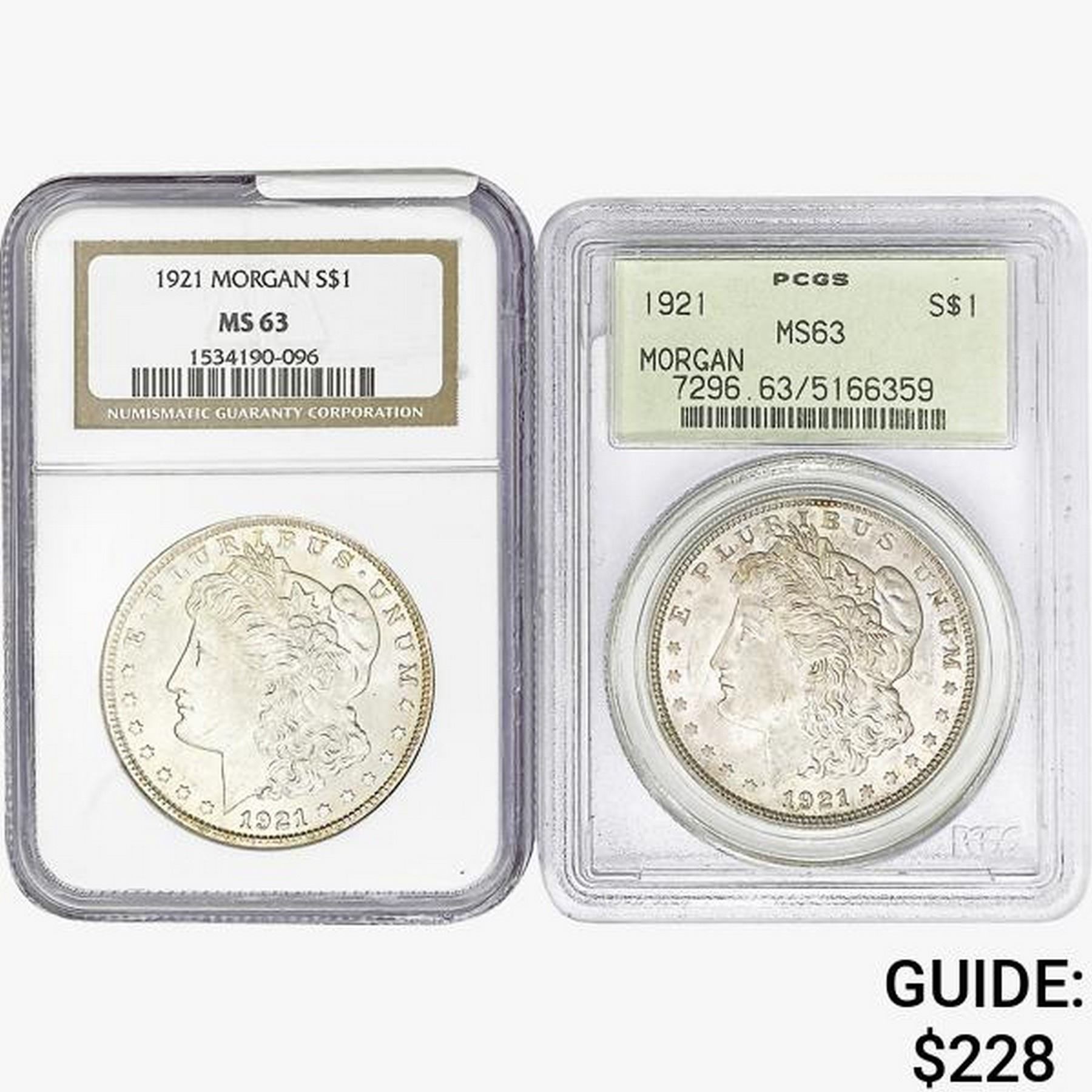 1921 [2] Morgan Silver Dollar PCGS/NGC MS63