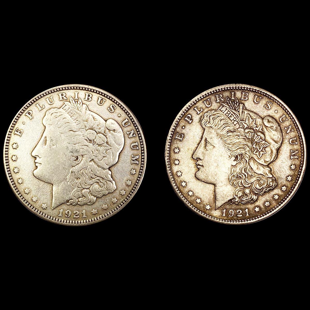 1921 (2) Morgan Silver Dollars ABOUT UNCIRCULATED
