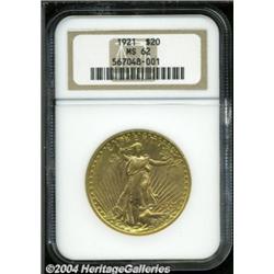 <table><tbody><tr><td><table> <TR><TD width="100%"><TABLE cellSpacing=1 cellPadding=3 width="100%" border=0><TBODY><TR><TD width="100%" bgColor=#79735c><FONT face=arial color=#ffffff size=3><B>Description</B> </FONT></TD></TR><TR><TD width="100%" bgColor=#ffffff><FONT face=arial size=2><B>1921 $20 MS62 NGC.</B></I> Despite a seemingly substantial mintage of 528,500 pieces, the 1921 is one of the premier condition rarities among collectible Saint-Gaudens Double Eagles. Unlike most of the key issues from the 1930s, the 1921, when encountered, is not guaranteed to grade Mint State, perhaps an indicator that small quantities were released at the time of issue and the majority were kept from commercial channels until the gold recall 12 years later. In fact, this issue's extant population is almost evenly divided between circulated and Mint State representatives.<BR>Both sides of this lustrous, frosty survivor are accented in delicate rose patina that is most evident in the reverse fields. A liberal amount of small contact marks are seen on the obverse, but are significantly less numerous on the reverse. The strike is typically bold and a few pinpoint areas of discoloration (perhaps from grease on the die) are located within the folds of Liberty's gown. There is a reverse die break (as struck, and not uncommon for the type) through the eagle's beak. Last year's FUN Sale featured a PCGS certified MS62 that fetched an impressive $62,100. A coin that would fit nicely into any advanced collection of certified U.S. gold. Population: 17 in 62, 8 finer (11/03).<BR><I>From a Magnificent Collection of Double Eagles.</B></I> </FONT></TD></TR></TBODY></TABLE></TD></TR></TBODY></TABLE><BR><A name=PricesRealized></A><TABLE cellSpacing=0 cellPadding=0 width="100%" bgColor=#000000 border=0><TBODY><TR><TD width="100%"><TABLE cellSpacing=1 cellPadding=3 width="100%" border=0><TBODY><TR><TD width="100%" bgColor=#79735c><A name=PR><FONT face=arial color=#ffffff size=3><B>Previous Prices from Heritage Auctions</B> </FONT></A></TD></TR><TR><TD bgColor=#f6f6ed><TABLE cellSpacing=0 cellPadding=0 width="100%" border=1><TBODY><TR><TD align=middle width="33%"><B>Date</B></TD><TD align=middle width="33%"><B>Service</B></TD><TD align=middle width="33%"><B>Price</B></TD></TR><TR bgColor=whitesmoke><TD width="33%"><B>01/11/2003</B></TD><TD width="33%">PCGS</TD><TD width="33%">$62,100.00</TD></TR><TR bgColor=whitesmoke><TD width="33%"><B>09/01/1999</B></TD><TD width="33%">PCGS</TD><TD width="33%">$46,000.00</TD></TR></TBODY></TABLE></TD></TR><TR><TD bgColor=#ffffff><FONT face=arial size=1 ?>PLEASE NOTE: All prices realized reflect the final hammer price PLUS the buyer's premium in auctions that charge a buyer's premium. Each item has a notation at the top of the listing indicating whether that lot included a buyer's premium. Example: A item that sells with a final hammer price of $100 and a 20% buyer's premium will display with a price realized of $120. All information listed is intended to be as accurate as possible, but errors are possible. Please use this guide carefully and inform us of any inaccuracies. </FONT></TD></TR></TBODY></TABLE></TD></TR></TBODY></TABLE><BR><TABLE cellSpacing=0 cellPadding=0 width="100%" bgColor=#000000 border=0><TBODY><TR><TD width="100%"><TABLE cellSpacing=1 cellPadding=3 width="100%" border=0><TBODY><TR><TD width="100%" bgColor=#79735c colSpan=6><FONT face=arial color=#ffffff size=3><B>Price Guide*</B> </FONT></TD></TR><TR bgColor=#f6f6ed><TD align=middle><B>Grade</B> </TD><TD align=middle><B>Coin World<BR>(Trends)</B> </TD><TD align=middle><B>Numismedia<BR>Retail</B> </TD><TD align=middle><B>Numismedia<BR>Wholesale</B> </TD><TD align=middle><B>Coin<BR>Universe</B> </TD><TD align=middle><B>Heritage<BR>Value Index</B> </TD></TR><TR bgColor=#ffffff><TD align=middle>61</TD><TD align=right>$50,000.00</TD><TD align=right>---</TD><TD align=right>$34,750.00</TD><TD align=right>$41,000.00</TD><TD align=right>$36,733.33</TD></TR><TR style="FONT-WEIGHT: bold" bgColor=#cccfdd><TD align=middle>62</TD><TD align=right>$75,000.00</TD><TD align=right>---</TD><TD align=right>$44,275.00</TD><TD align=right>$58,000.00</TD><TD align=right>$53,483.33</TD></TR><TR bgColor=#ffffff><TD align=middle>63</TD><TD align=right>$125,000.00</TD><TD align=right>---</TD><TD align=right>$69,500.00</TD><TD align=right>$97,500.00</TD><TD align=right>$81,316.67</TD></TR><TR bgColor=#ffffff><TD colSpan=6><FONT size=1>*All information listed is intended to be as accurate as possible, but errors are possible. No item may be returned or refused based on this information which is provided as a service to our customers. You should contact each pricing source directly to determine the accuracy of this information. </FONT></TD></TR></TBODY></TABLE></TD></TR></TBODY></TABLE><BR><TABLE cellSpacing=0 cellPadding=0 width="100%" bgColor=#000000 border=0><TBODY><TR><TD width="100%"><TABLE cellSpacing=1 cellPadding=3 width="100%" border=0><TBODY><TR><TD width="100%" bgColor=#79735c><FONT face=arial color=#ffffff size=3><B>Population Guide</B> </FONT></TD></TR><TR bgColor=#ffffff><TD align=middle><!-- Begin Output of Population Grid--><TABLE cellSpacing=0 cellPadding=0 width="100%" border=0><TBODY><TR><TD vAlign=center><TABLE cellSpacing=0 width="100%" border=1 cellsadding="3"><TBODY><TR><TD vAlign=center><TABLE cellSpacing=0 cellPadding=3 width="100%" border=1><TBODY><TR><TD vAlign=center align=middle bgColor=#f0f1e8 colSpan=2 <CENTER><FONT face=Arial size=2><B>PCGS Pop </B></FONT><CENTER></CENTER></TD><TD vAlign=center align=middle bgColor=#f0f1e8 colSpan=2><CENTER><FONT face=Arial size=2><B>NGC Pop</B></CENTER></FONT></TD></TR><TR><TD vAlign=center><FONT face=Arial size=2>(62)</FONT> </TD><TD vAlign=center align=right><FONT face=Arial size=2>18</FONT> </TD><TD vAlign=center><FONT face=Arial size=2>(62)</FONT> </TD><TD vAlign=center align=right><FONT face=Arial size=2>17</FONT> </TD></TR><TR><TD vAlign=center><FONT face=Arial size=2>(>62)</FO
