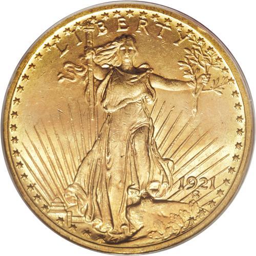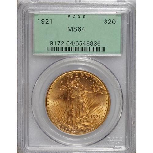 <B>1921 $20 MS64 PCGS.</B></I> The 1921 is a classic rarity in the Saint-Gaudens double eagle series. It is comparable in overall rarity to the 1920-S, but is considerably more challenging as a condition rarity, especially in the better grades of Uncirculated. A few more coins in the XF-AU grade range are known of the 1921 (about 70 1921 specimens have been certified XF-AU by PCGS and NGC, as contrasted to approximately 50 XF-AU examples of the 1920-S), but there are only a handful of 1921 coins extant above MS63 (specifically, the services have graded five near-Gem and finer 1921 specimens, and 27 1920-S MS64 and better coins).<BR> The reported mintage of the 1921 was 528,000 pieces, which is lower-than-average for the 1920s era, when totals of one million or more coins were common. Nevertheless, the figure was not so low to suggest that it would be a difficult date. In this regard, Paul Green, in an August 15, 2006 <I>Numismatic News</B></I> article entitled "1921 Double Eagle Survives in Low Numbers," writes: "The 1921 was more than a decade before the Gold Recall Order and the melting that followed. It's easy to understand why a date in the 1930s might have been heavily melted, but it's less easy to figure out why the 1921 would have been melted in large numbers. After all, a number of dates produced after 1921 show little evidence of being heavily destroyed in the recall. The 1923, for example, had a nearly identical mintage (566,000 pieces), but there is no evidence of unusual melting...yet the 1923 is $850 in VF20, but the 1921 is priced at $12,000."<BR> Approximately half of the extant 1921 double eagle population is located at the circulated grade levels, prompting Green to say: "The circulated numbers seen at both grading services suggest that the 1921 had a rather routine period, with some coins being released, although probably not all. There is reason to believe that a small number went overseas." If some of this issue did in fact go overseas, it must have been very small, as no appreciable hoards of the 1921 double eagle are known. Indeed, Walter Breen, in his 1988 <I>Encyclopedia of U.S. and Colonial Coins,</B></I> refers to "...about 5 from European sources since 1981." Along a similar vein, David Bowers, in his discussion of the 1921 in his 2004 treatise <I>A Guide Book of Double Eagle Gold Coins,</B></I> states: "While some have sneaked into the market in recent years, and offerings of the past decade are more numerous than in earlier times, no quantities of hundreds or more Mint State pieces have turned up, unlike the case for certain former rarities later in the decade."<BR> The 1921 twenty was notably absent from the Dr. Thaine Price Collection, and that in the Browning Collection was a Choice AU. The Harry Bass and Henry Norweb collections each contained an MS63 example, and the Phillip Morse Collection included an MS64, an MS65, and an MS66. And according to Jeff Garrett and Ron Guth in their 2006 <I>Encyclopedia of U.S. Gold Coins, 1795-1933,</B></I> "...both the American Numismatic Society and the Smithsonian collection contain a superb Gem example of the date. Both were obtained from the Mint at the time of issue."<BR> This near-Gem survivor displays a satiny overall sheen and strong cartwheel luster effects. An impressive strike is noted on the design elements, manifesting itself in strong definition on the Capitol building, on Liberty's face and on the fingers of the left hand and the associated olive branch, and on most of the eagle's plumage. Rich green-gold and orange-gold colors blend together over the surfaces. Several scattered abrasions are not unusual for the assigned grade; a minute diagonal mark in the left obverse field and a couple more on the reverse sun are mentioned solely to help aid for future pedigree purposes. This is an important bidding opportunity for either the double eagle or 20th century gold specialist. Housed in an earlier PCGS holder with a green insert. Population: 3 in 64, 4 finer (4/07).<BR><I>Ex: Morse Collection (Heritage, 11/05), lot 6646.</B></I><BR><BR><b>Shipping:</b> Coins & Currency (<a target="_blank" href="http://www.heritageauctions.com/common/shipping.php">view shipping information</a>)