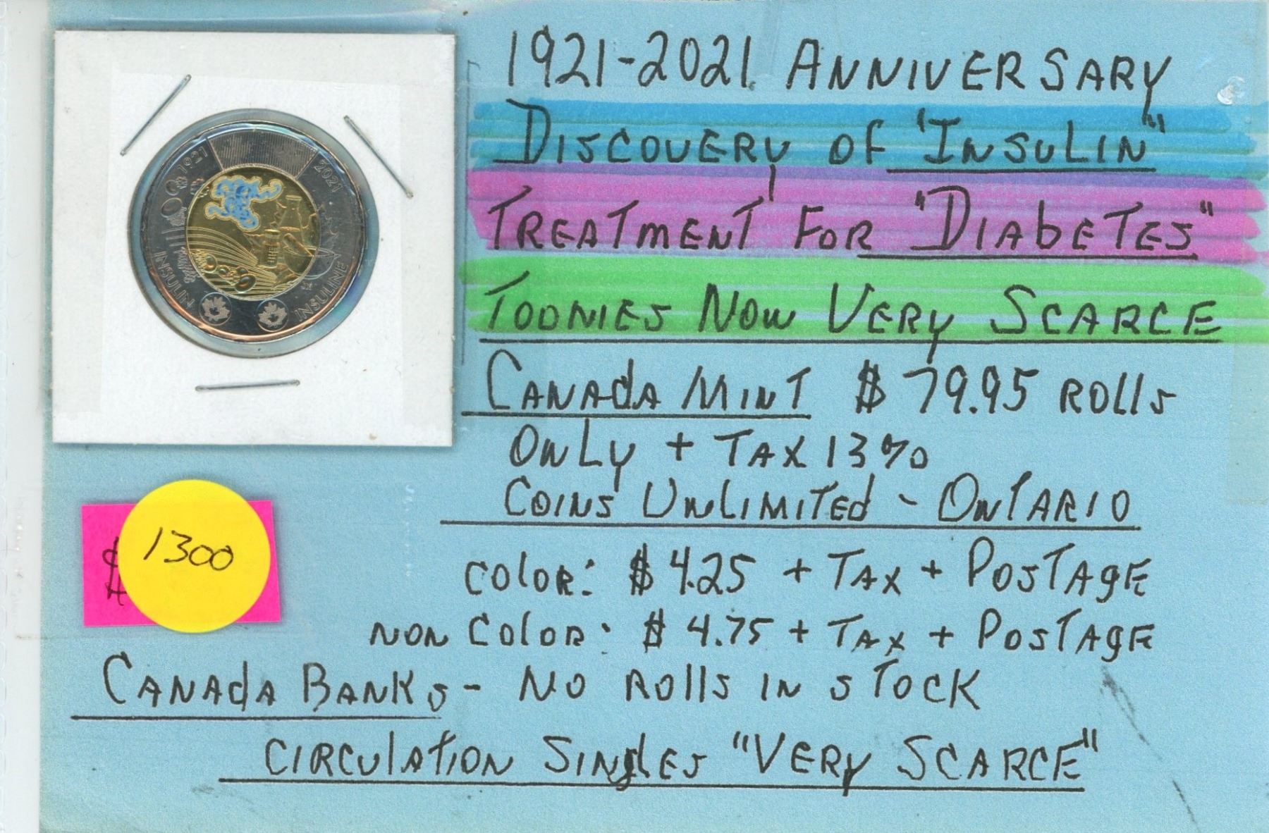 1921-2021 Discovery of Insulin Color Toonie
