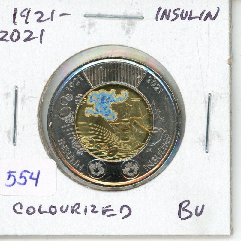 1921 – 2021 Discovery of Insulin Toonie. Colourized. BU from an original roll.