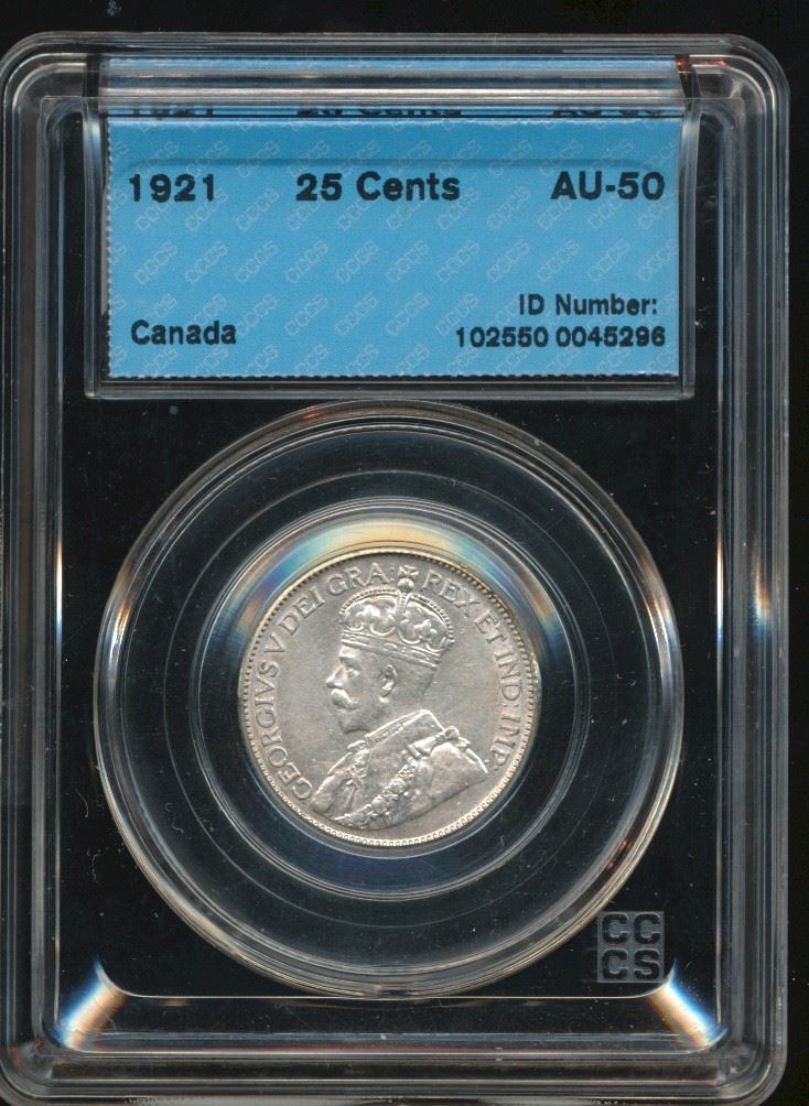 1921 25¢ CCCS AU50. Brilliant and lustrous.