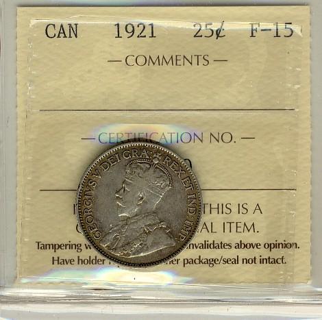 1921 25¢ ICCS F15
