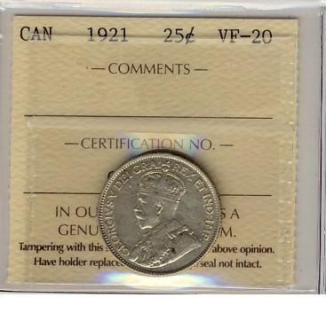 1921 25¢ ICCS VF20.