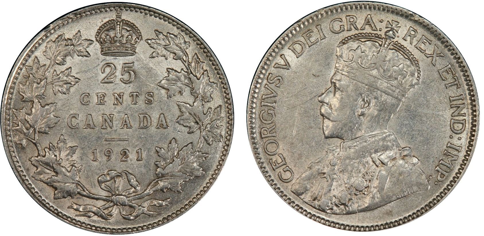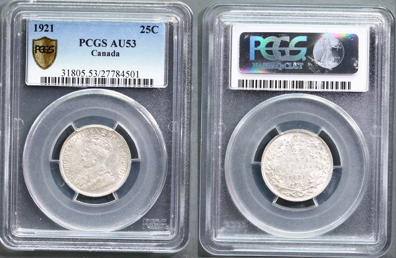 1921 25¢ PCGS Choice About Uncirculated-53. Bright white and lustrous example.