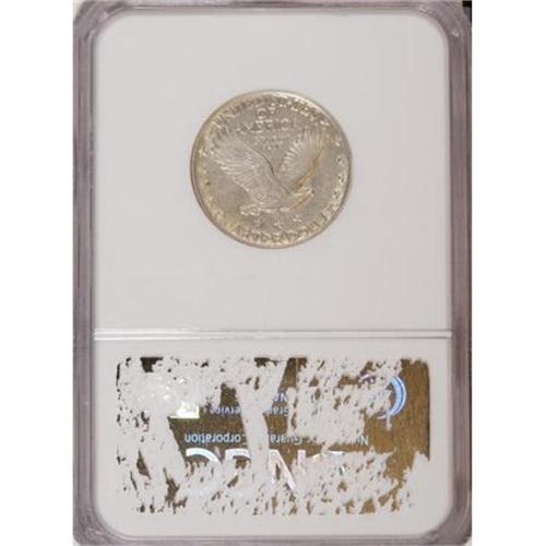 <B>1921 25C AU53 NGC.</B></I> This is a lovely AU representative, with smooth, nearly mark-free surfaces and light, creamy silver-gray color flecked with pale gold highlights across each side. Even wear affects the highpoints, and several faint pinscratches are noted just above the eagle's beak. A low mintage key date in the Standing Liberty series. <BR><BR><B>Coin Engraver:</B> Hermon A. MacNeil<BR><BR><b>Shipping:</b> Coins & Currency (<a target="_blank" href="http://www.heritageauctions.com/common/shipping.php">view shipping information</a>)