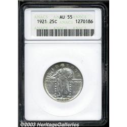 1921 25C AU55 ANACS. Brilliant luster leaps at you from this low-mintage Standing Liberty piece. It has good strike detail and is untoned. Important notice: Heritage usually auctions material at the rate of 200-250 lots per hour. On some occasions eBay Live bid software or the Internet may not be able to keep up with the pace of the auction. We recommend placing a realistic absentee bid now as insurance to avoid disappointment. Occasionally the auctioneer may eliminate or reject an eBay Live bid, and the auctioneer may also reopen a lot after the close of the eBay live bidding (usually because we missed an audience bid), and may reject your bid even if it shows you as the winning bidder. By bidding via eBay Live, you agree that Heritage may award the lot to another bidder at its sole discretion under the circumstances described above or any other reasonable circumstances. Also please note that all Heritage lots purchased through eBay Live carry a 20% Buyer's Premium. Please make sure you read the Terms and Conditions before you bid.