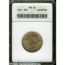 <B>1921 25C MS64 ANACS.</B></I> Generally well struck, with lustrous champagne-gold surfaces.