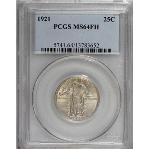 <B>1921 25C MS64 Full Head PCGS.</B></I> The low mintage 1921 is the key Philadelphia issue aside from the famous 1916. As is the case with its dime and half dollar counterparts, the 1921 quarter had a limited production due to heavy silver dollar coinage. This sharply struck near-Gem has light tan-gray toning and an attractive appearance. Population: 59 in 64, 67 finer (8/07).<BR><BR><B>Coin Engraver:</B> Hermon A. MacNeil<BR><BR><b>Shipping:</b> Coins & Currency (<a target="_blank" href="http://www.heritageauctions.com/common/shipping.php">view shipping information</a>)