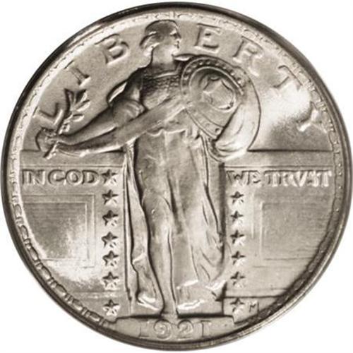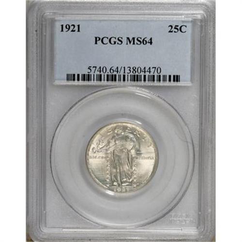 <B>1921 25C MS64 PCGS.</B></I> Shimmering luster and outstanding surface preservation are two of the attributes of this lovely near-Gem. The surfaces are untoned, with creamy silver-white coloration. This issue has always been popular with collectors because of its low mintage of 1.9 million pieces, and is elusive in the better grades of Mint State. This is an exceptionally attractive example of this scarce key date that displays just one noticeable abrasion, on the eagle's upper left (facing) wing. <BR><BR><B>Coin Engraver:</B> Hermon A. MacNeil<BR><BR><b>Shipping:</b> Coins & Currency (<a target="_blank" href="http://www.heritageauctions.com/common/shipping.php">view shipping information</a>\)