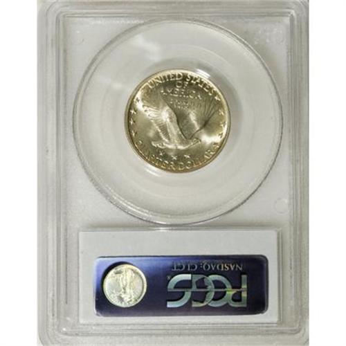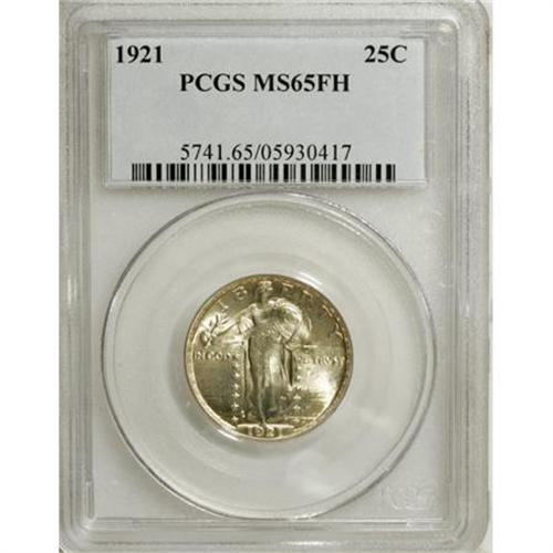 <B>1921 25C MS65 Full Head PCGS.</B></I> Nearly 2 million pieces were struck of this tough-date quarter. J.H. Cline (2007) speculates that: "There seem to be two types for this date and mintmark. Type I: struck before die modification. Most of these are weak overall. Type II: Outstanding. Full, sharp heads with sharp full lines in the shield. These coins are deeply struck ... . They nearly always have sharp lines in the gown, olive branch leaves, and berries with sharp shield lines, both vertical and horizontal." This Full Head Gem example is Type Two, displaying as it does excellent design delineation. Potent luster embraces both sides, and well preserved surfaces reveal traces of light tan-gold color. A simply marvelous Standing Liberty quarter. Population: 43 in 65 full Head, 19 finer (5/07).<BR><BR><b>Shipping:</b> Coins & Currency (<a target="_blank" href="http://www.heritageauctions.com/common/shipping.php">view shipping information</a>)