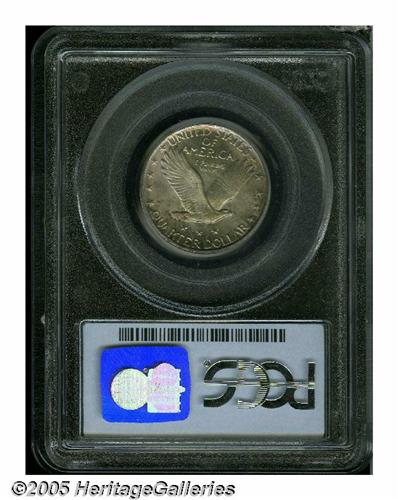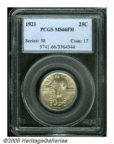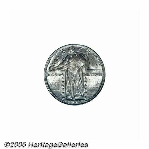 <B>1921<25C> MS66 Full Head PCGS.</B></I> A boldly struck example of this scarcer issue, showing the major design details to their fullest extent, including Liberty's head and her shield. Only the first 1 in the date seems slightly weak. Both sides are naturally toned, the obverse being more extensively layered in gray and rose hues, while speckled reddish-brown toning is seen near the reverse boundaries. The coin is exquisitely preserved, and the gleaming surfaces are nearly pristine. Population: 18 in 66, 1 finer (6/05).