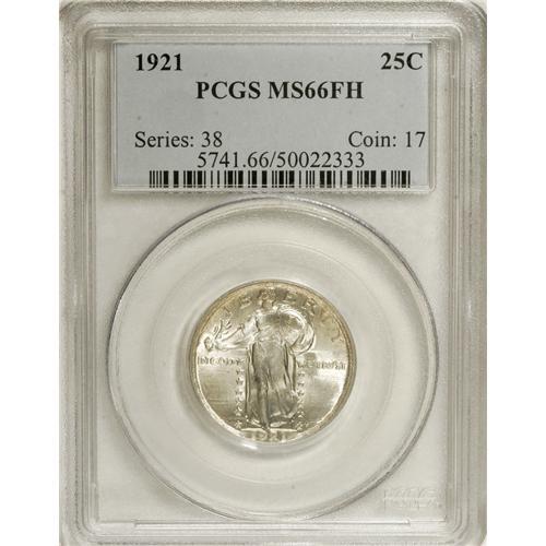 <B>1921 25C MS66 Full Head PCGS.</B></I> Quarter dollars were only coined at Philadelphia during the year, and today they are elusive in all grades, especially in Gem quality. This piece is one of the finest existing examples from a mintage that approached 2 million coins. The surfaces are highly lustrous with fully brilliant mint frost. All of the design features on both sides are sharply detailed, including full head and shield definition. Few examples of this date have survived in Gem grade, about 10% of the total surviving population according to J.H. Cline. Population: 18 in 66 Full Head, 1 finer (2/07).<BR><I>From The Encinitas Collection.</B></I><BR><BR><b>Shipping:</b> Coins & Currency (<a target="_blank" href="http://www.heritageauctions.com/common/shipping.php">view shipping information</a>)