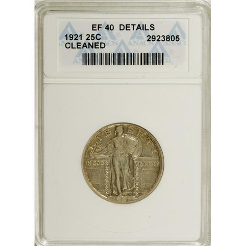 <B>1921 25C --Cleaned--ANACS. XF40 Details.</B></I> NGC Census: (8/336). PCGS Population (14/490). Mintage: 1,916,000. Numismedia Wsl. Price: $483. (#5740)<BR><BR><b>Shipping:</b> Coin/Currency (<a target="_blank" href="http://www.heritageauctions.com/common/shipping.php">view shipping information</a>)