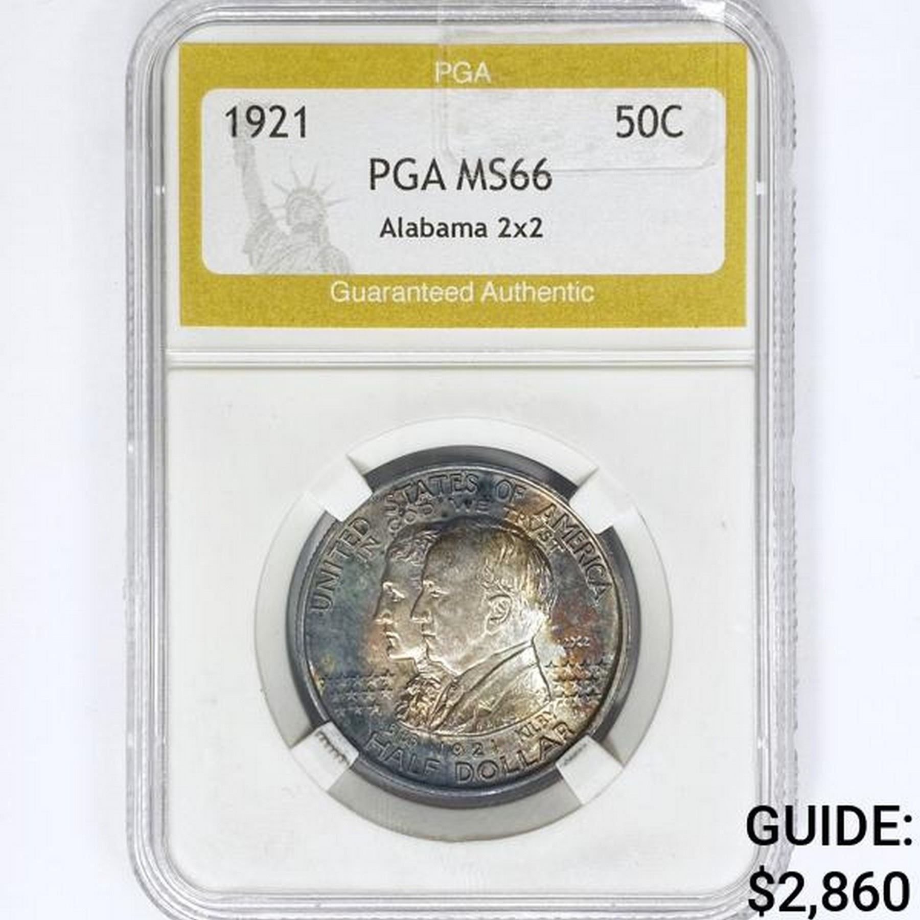 1921 2X2 Alabama Half Dollar PGA MS66