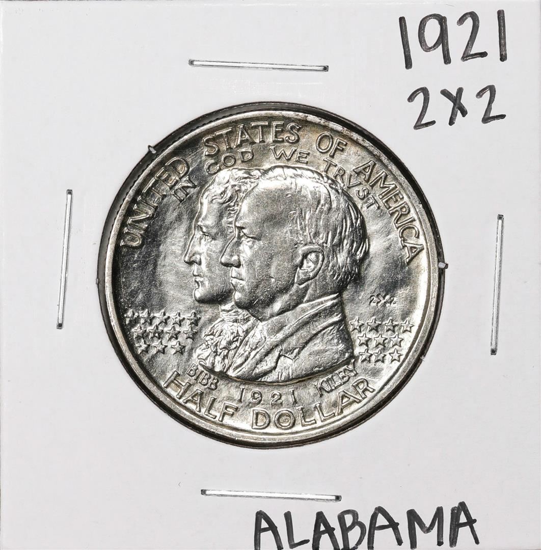 One 1921 2x2 Alabama Centennial Commemorative Half Dollar Coin.